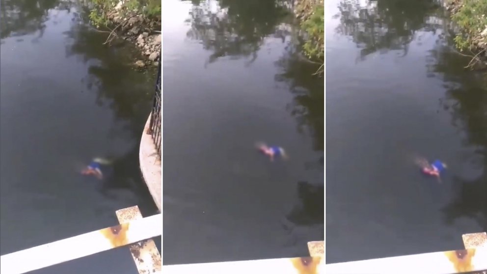 En un video que circula por redes sociales, se aprecia el aterrador momento en el que es tragada la mujer que se encontraba lavando ropa en le cuerpo de agua.